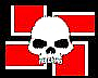 Легион - военная организация и потому "свастика" умышлено развернута против часовой стрелки в разрушительную сторону, красный фон - означает "пощады не будет" , наличие черепа "мертвая голова", череп - как символ смерти(легион несущий смерть врагам) преданность до смерти.