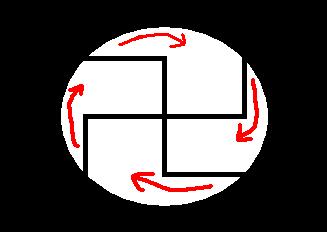 Чуть-чуть отсебятины. Всем известно, что Гитлер увлекался окультизмом. Делал упор он на Скандинавские Руны. Символ для фашизма, он выбрал не случайно: есть два знака 1 - это свастика - знак соляриса(солнца), а имено жизни и процветания. Круг двигающийся по часовой стрелки; знак 2 - это совастика, символ разрушения, круг движется против часовой. Гитлер использовал Совастику, как символ, но изменив знак и наклонив его (картинка 3).